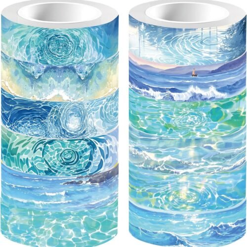 12 Styles Ocean Masking Tape Journal Tape 16.4FT Blue Sea World Decorative Gift Wrapping Tapes Rolls for DIY Crafts Scrapbook Journal Notebook Planner Envelope Party Favor Supplies
